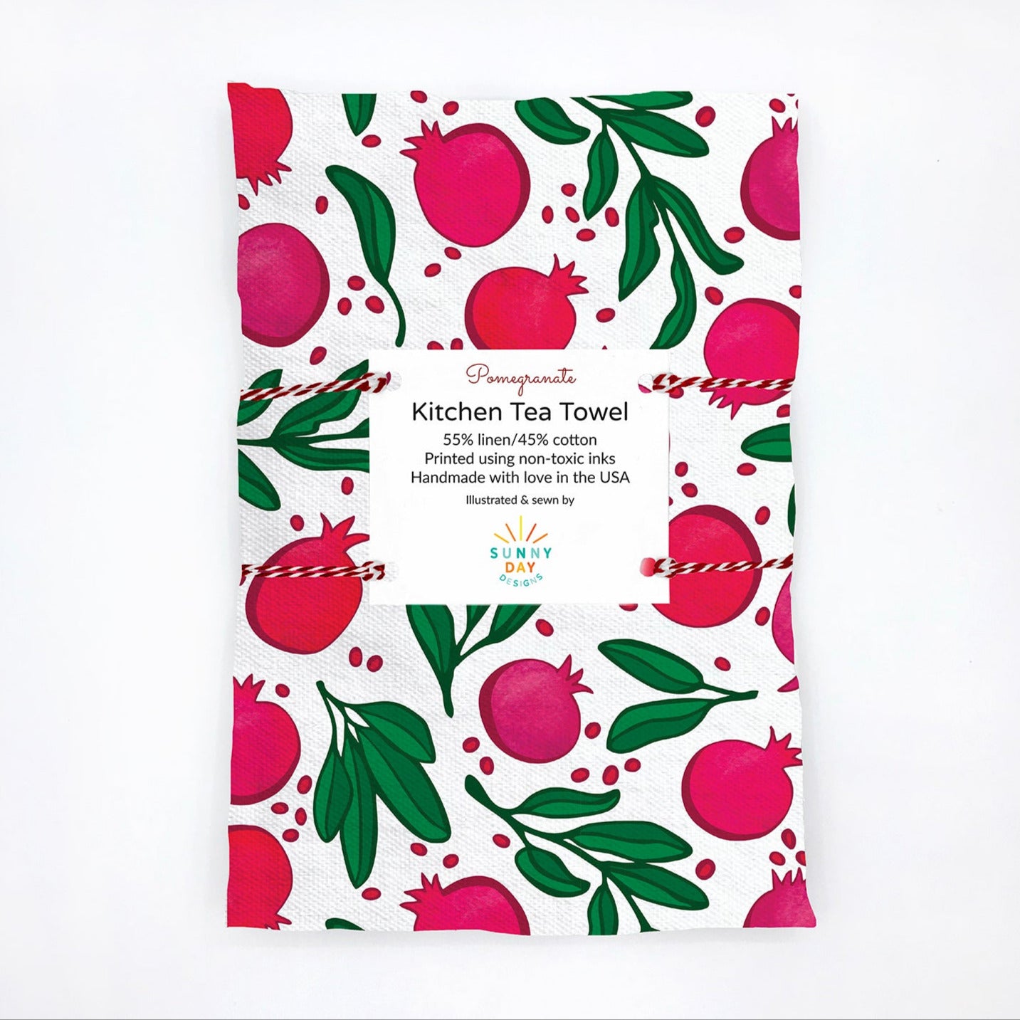 This cheerful, pomegranate-themed tea towel will brighten up your kitchen decor! Our soft and durable dish towels are proudly handmade in the USA from a durable and soft linen/cotton fabric. You'll love the playful and bright "Pomegranate" print on this colorful dish towel!