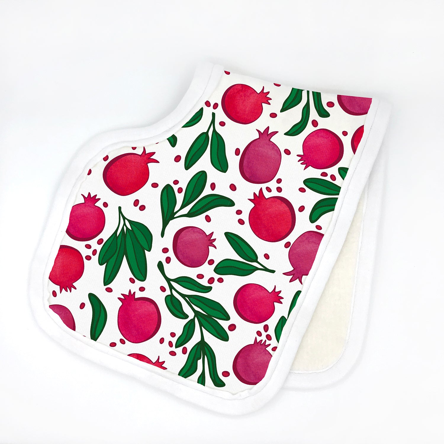 Foodies and parents-to-be of Middle Eastern, Indian, Persian or Jewish descent will especially love this pomegranate-printed burp cloth, since pomegranates are an important symbol in all of these cultures! The beautiful and sweet pomegranate print on this handmade baby burp cloth makes it a perfect for newborns who were born close to religious holidays such as Rosh Hashanah, Diwali or Ramadan.