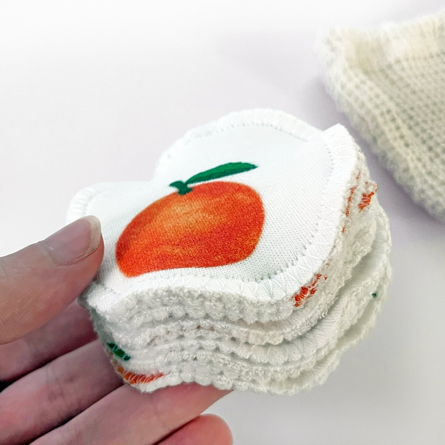 This self care gift set includes 10 fabric face wipes made from our colorful and cute Sweet Citrus printed organic cotton knit fabric. You'll love the colorful orange fruits on this printed fabric!